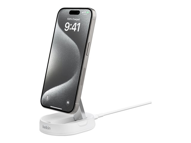 Support de chargement sans fil - magnétique + adaptateur secteur - 15 Watt - blanc