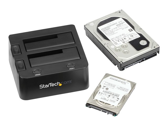 StarTech.com Dual-Bay USB 3.0 to SATA Hard Drive Docking Station, USB Hard Drive Dock, External 2.53.5 SATA IIIIII, SSDHDD Docking Station, Hot-Swap Hard Drive Bay - Top-Loading - Contrôleur de stockage - 2.5", 3.5" - SATA 6Gb/s - USB 3.0 - noir - pour P/N: SVA12M5NA
