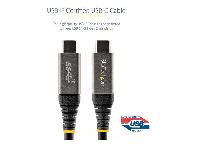 StarTech.com Câble USB C 10Gbps 1m - Certifié USB-IF - Câble USB 3.1/3.2 Gen 1 Type-C - 100W (5A) Power Delivery, DP Alt Mode - Cordon USB C vers C - Charge/Synchronisation (USB31CCV1M) - Câble USB - 24 pin USB-C (M) pour 24 pin USB-C (M) - USB 3.2 Gen 2 / DisplayPort 1.4 /Thunderbolt 3 - 1 m - support 4K - gris, noir
