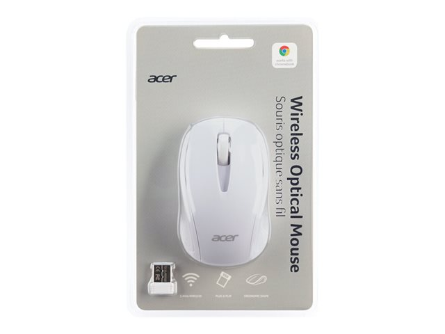 Acer M501 - Souris - optique - 3 boutons - sans fil - 2.4 GHz - récepteur sans fil USB - blanc - Pour la vente au détail - pour Chromebook 31X; 512; 71X; Chromebook Enterprise Spin 513; Chromebook Spin 51X; 713