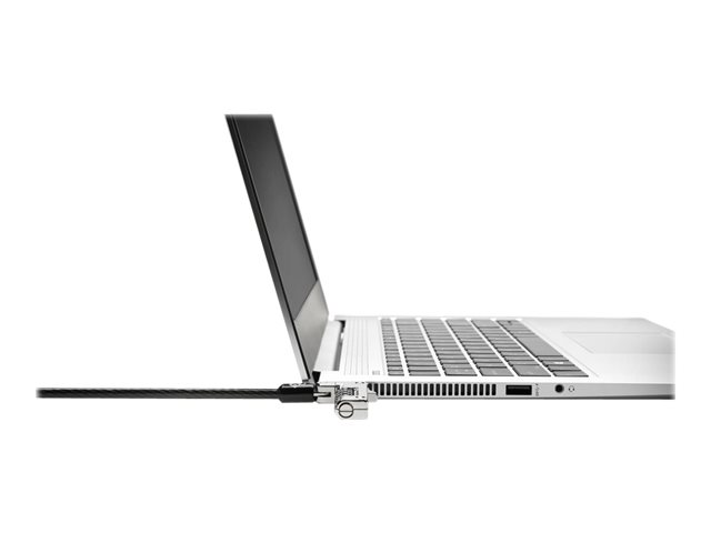 Un câble de sécurité classique peut parfaitement convenir pour un ordinateur équipé d'une nano-encoche de sécurité. Vous risquez cependant de ne pas pouvoir poser l'ordinateur bien à plat une fois le câble fixé pour la simple raison que l'antivol est plus épais que l'ordinateur. Le câble de sécurité ultrafin à combinaison NanoSaver est la solution de sécurité sans clé la plus fiable, spécialement conçue pour poser à plat de manière stable les ordinateurs portables ultrafins et les PC 2 en 1 équipés d'encoches de sécurité Nano.