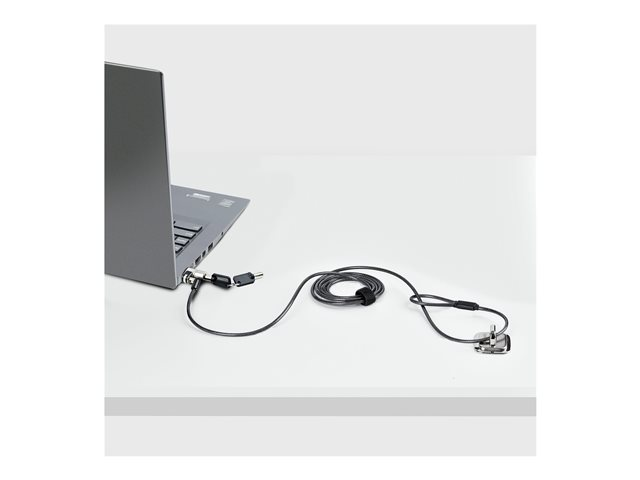 L'antivol pour ordinateur portable est compatible avec la fente Noble Wedge et il est conçu pour empêcher le vol d'ordinateurs portables et d'autres ordinateurs ultraminces. L'antivol pour ordinateur portable est doté d'un câble résistant à la coupure avec un revêtement en PVC, ce qui en fait une solution durable et fiable pour sécuriser les ordinateurs portables. Le corps de l'antivol est recouvert d'un alliage de zinc qui prévient la corrosion et l'usure. La conception compacte de ce verrou est parfaite pour les ordinateurs portables ultraminces, les ordinateurs portables 2-en-1, les tablettes et de nombreux autres appareils dotés d'une fente Noble Wedge.