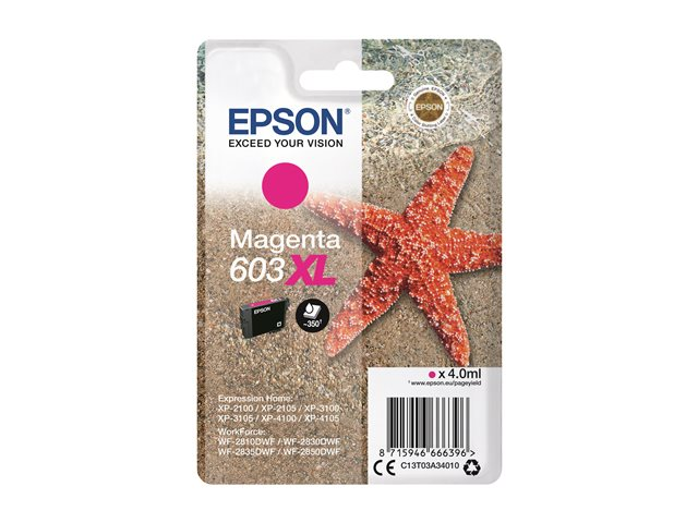 Epson 603XL - 4 ml - XL - magenta - original - emballage coque avec alarme radioélectrique/ acoustique - cartouche d'encre - pour Expression Home XP-2150, 2155, 3150, 3155, 4150, 4155; WorkForce WF-2820, 2840, 2845, 2870 C13T03A34020
