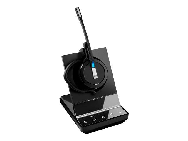 Micro-casque monaural sans fil DECT triple connectivité, doté d'un triple style de maintien. Se connecte à un PC/softphone, un téléphone fixe et un mobile pour un maximum de flexibilité. Son très large bande pour une qualité audio époustouflante.