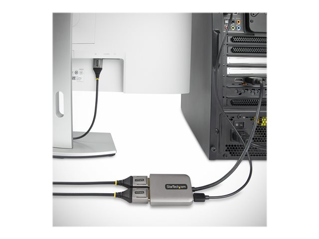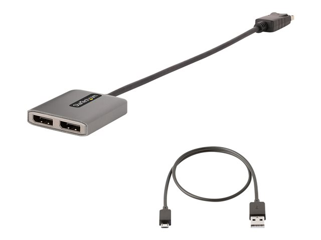 StarTech.com 2-Port DisplayPort MST Hub, Dual 4K 60Hz, DP to 2x DisplayPort Monitor Adapter, DP 1.4 Multi-Monitor Video Adapter w/ 1ft Built-in Cable, USB Powered, Windows Only - Multi Stream Transport Hub (MST14DP122DP) - Concentrateur (hub) - 1 x DisplayPort + 1 x micro-USB + 2 x DisplayPort